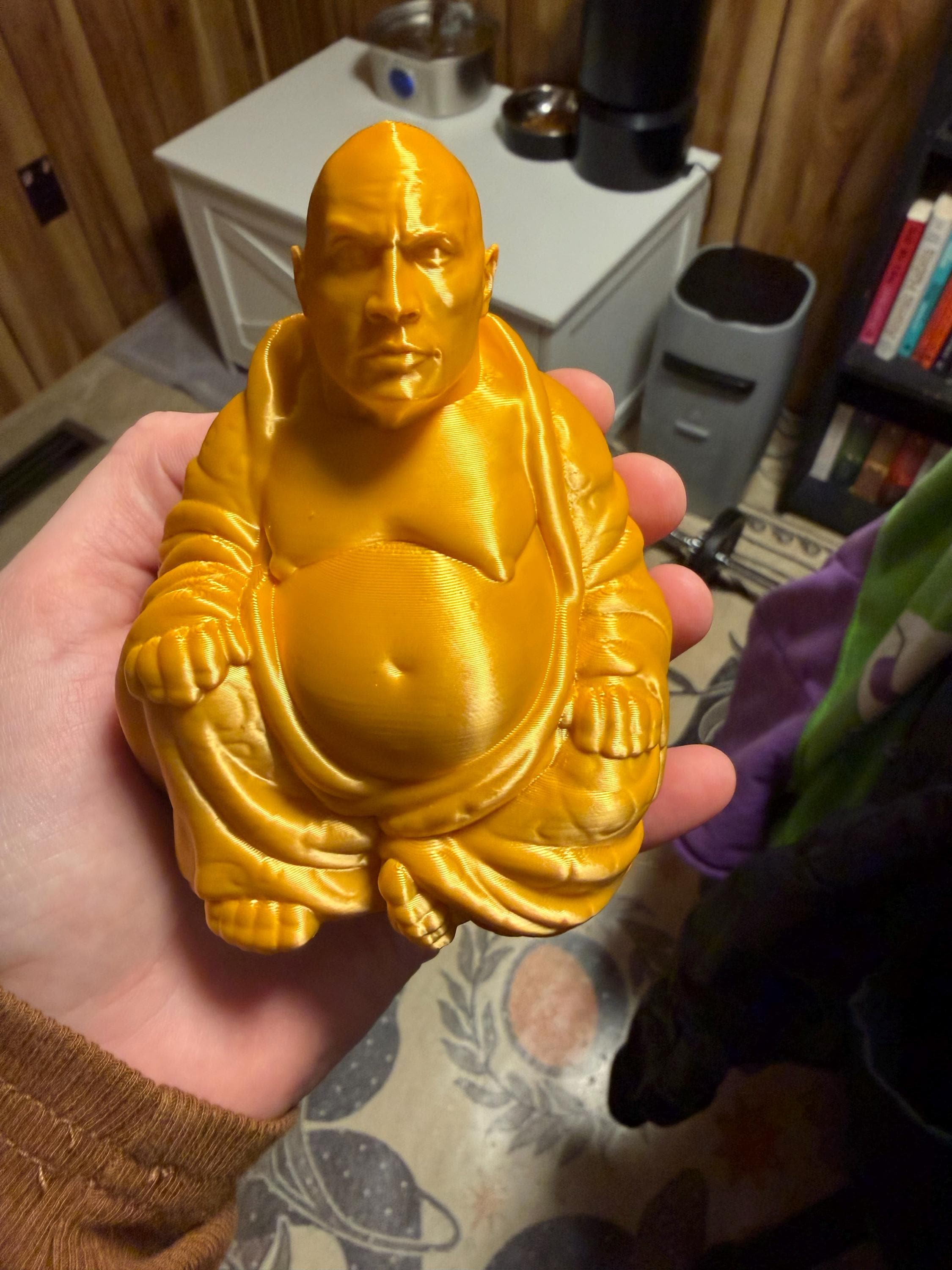 Introducing The Rudda, a captivating fusion of two iconic symbols: Dwayne "The Rock" Johnson and the serene essence of a Buddha statue, meticulously 3D printed to create a harmonious blend of strength and tranquility.